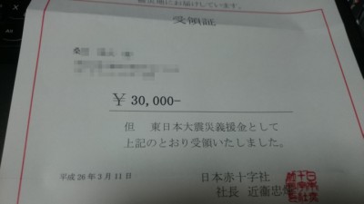 2014/03/11 … 日本赤十字社を通じて 30,000円を寄付致しました。